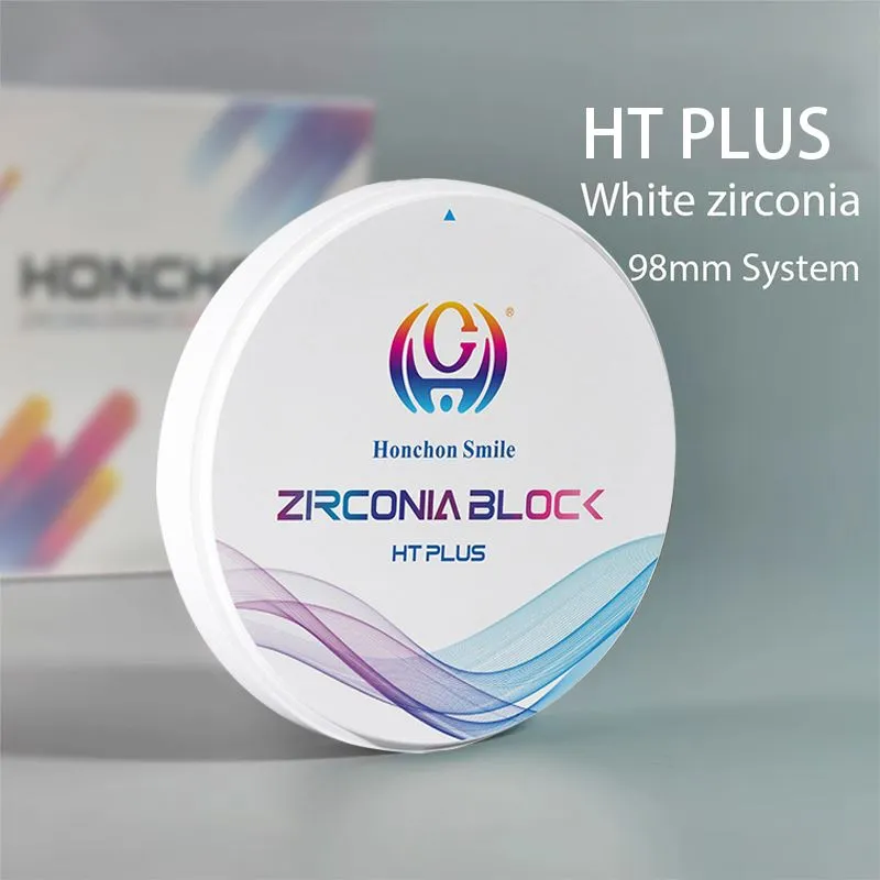 Il disco in zirconio bianco HONCHON 98×14 HT è progettato per la produzione di restauri dentali stabili e affidabili come corone e ponti. Con una resistenza alla flessione di circa1350 MPae una traslucenza di circa40%, è adatto per restauri posteriori e ponti-a lunga campata.